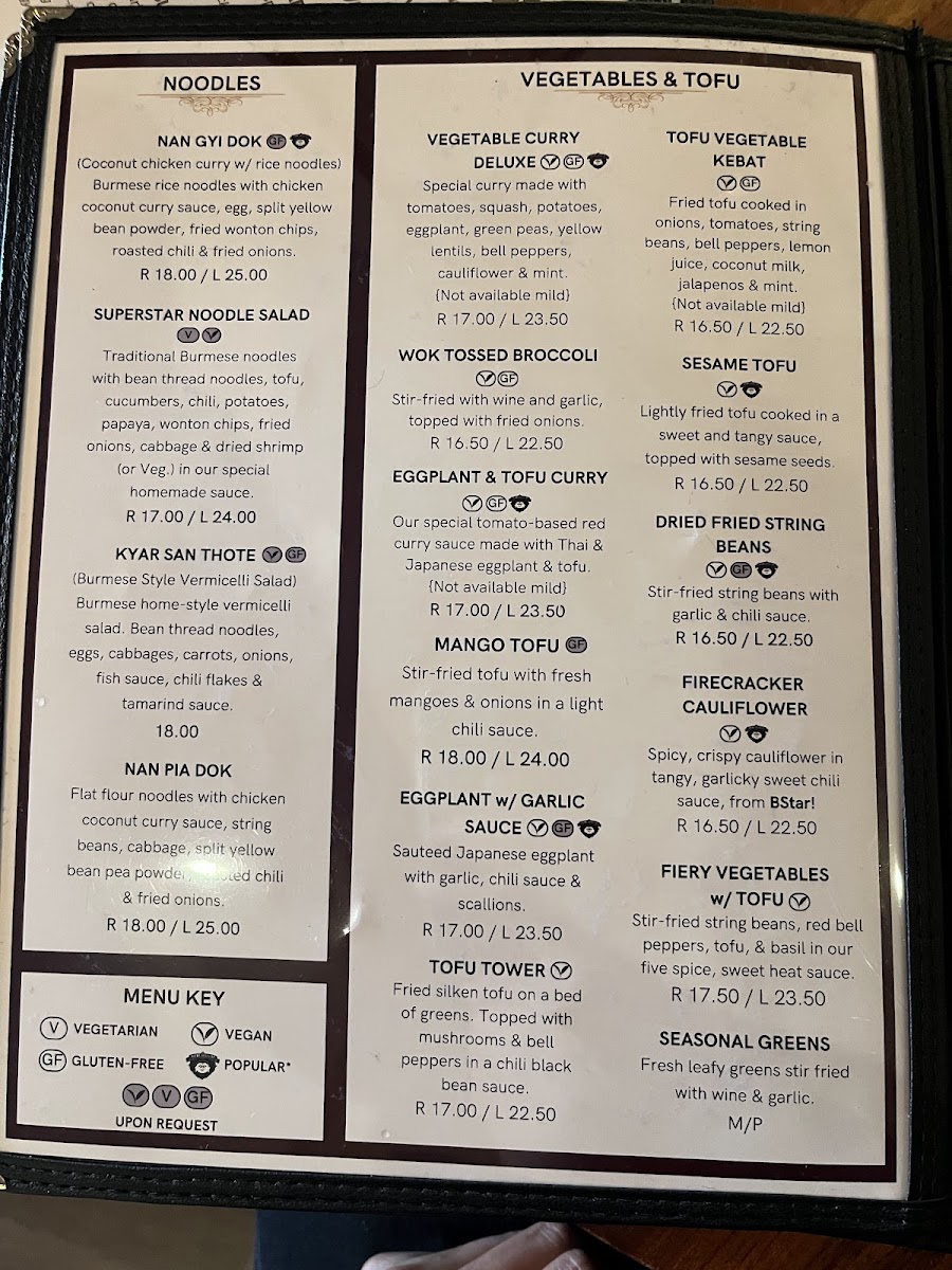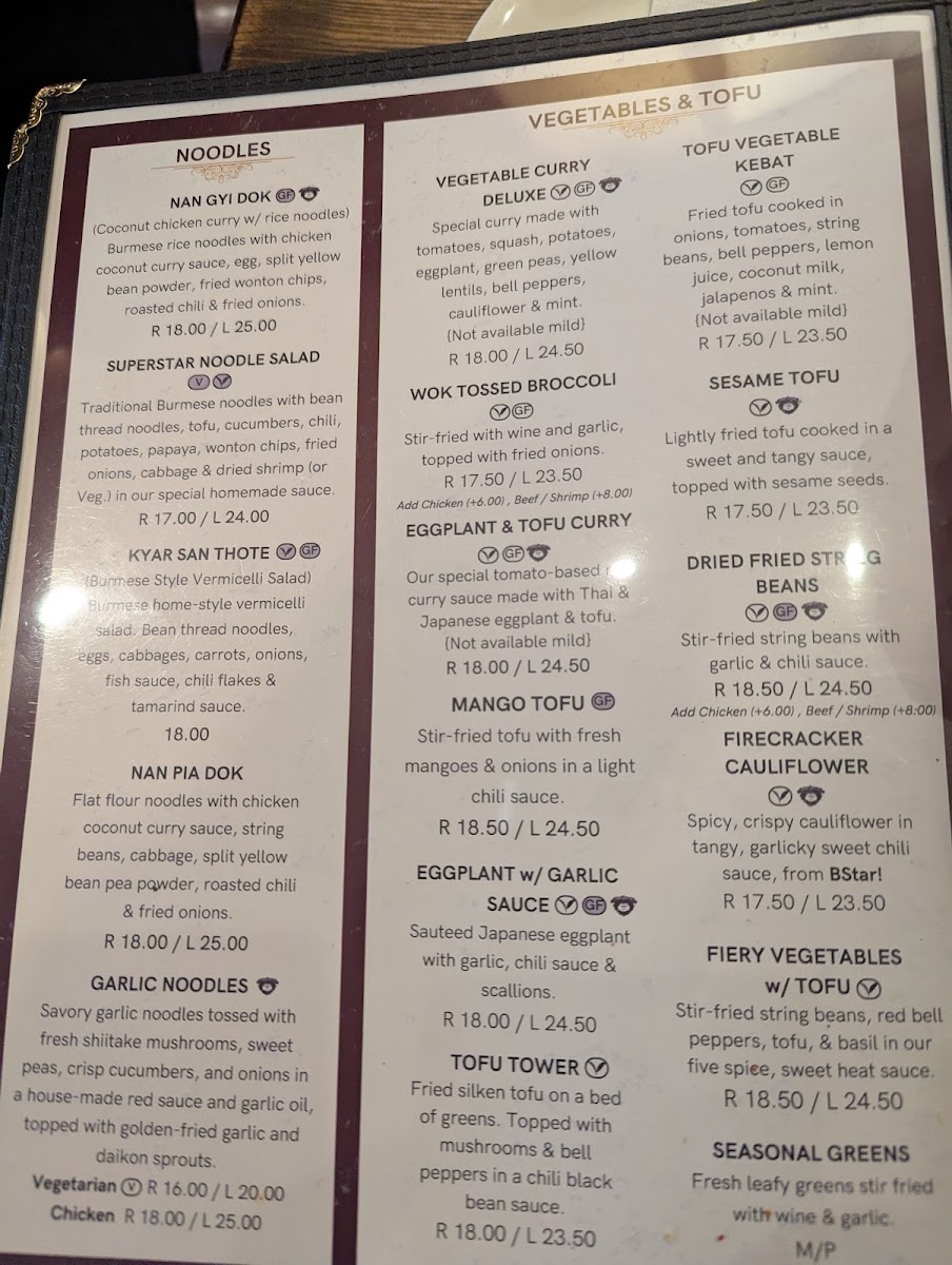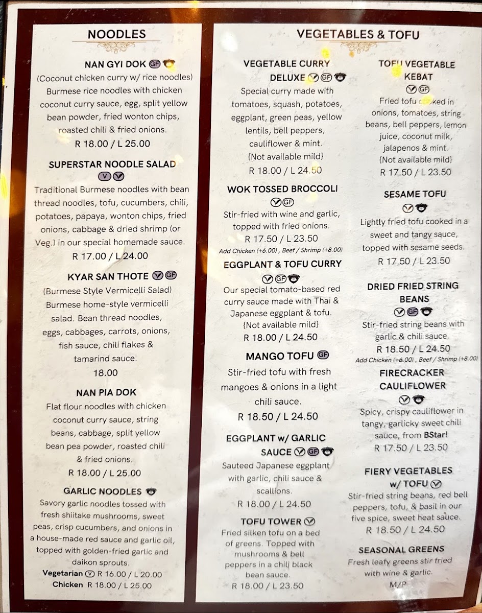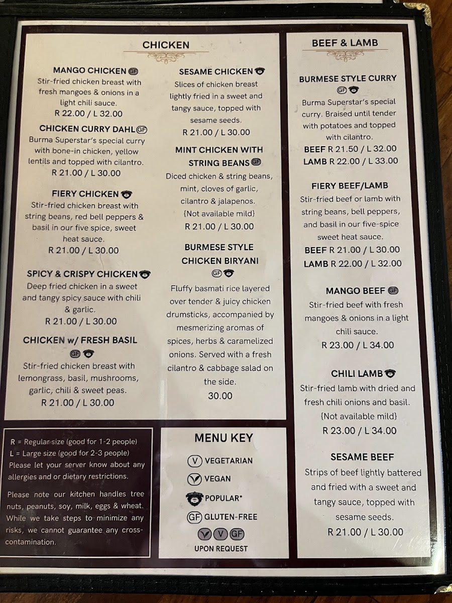 Step into Burma Superstar, where the bold flavors of Burmese cuisine come alive in every dish. Located at 309 Clement St in San Francisco, CA, this cozy spot offers a delightful menu that blends traditional Burmese spices with fresh, high-quality ingredients. The Burma Superstar Menu is packed with vibrant, aromatic dishes that cater to all tastes, from savory curries to tangy salads, all bursting with flavor. Whether you're in the mood for something light like the famous tea leaf salad or craving heartier fare like the chicken curry, each plate brings a unique taste of Myanmar. Pair your meal with one of their refreshing beverages or a traditional Burmese dessert for a truly satisfying experience.